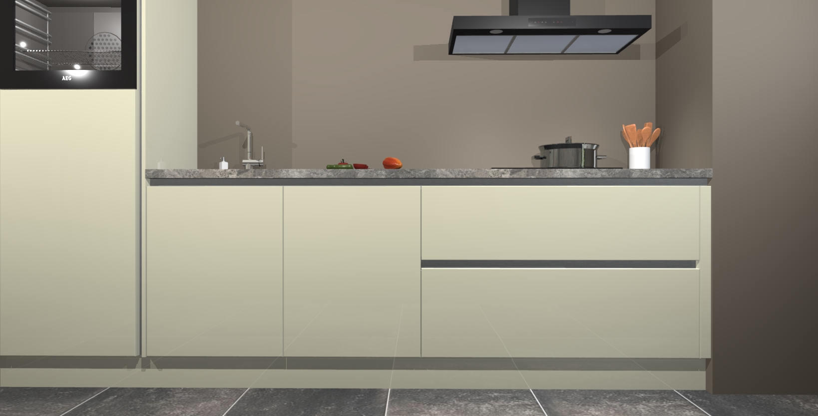 Inclusief plinten, stelpoten en werkblad