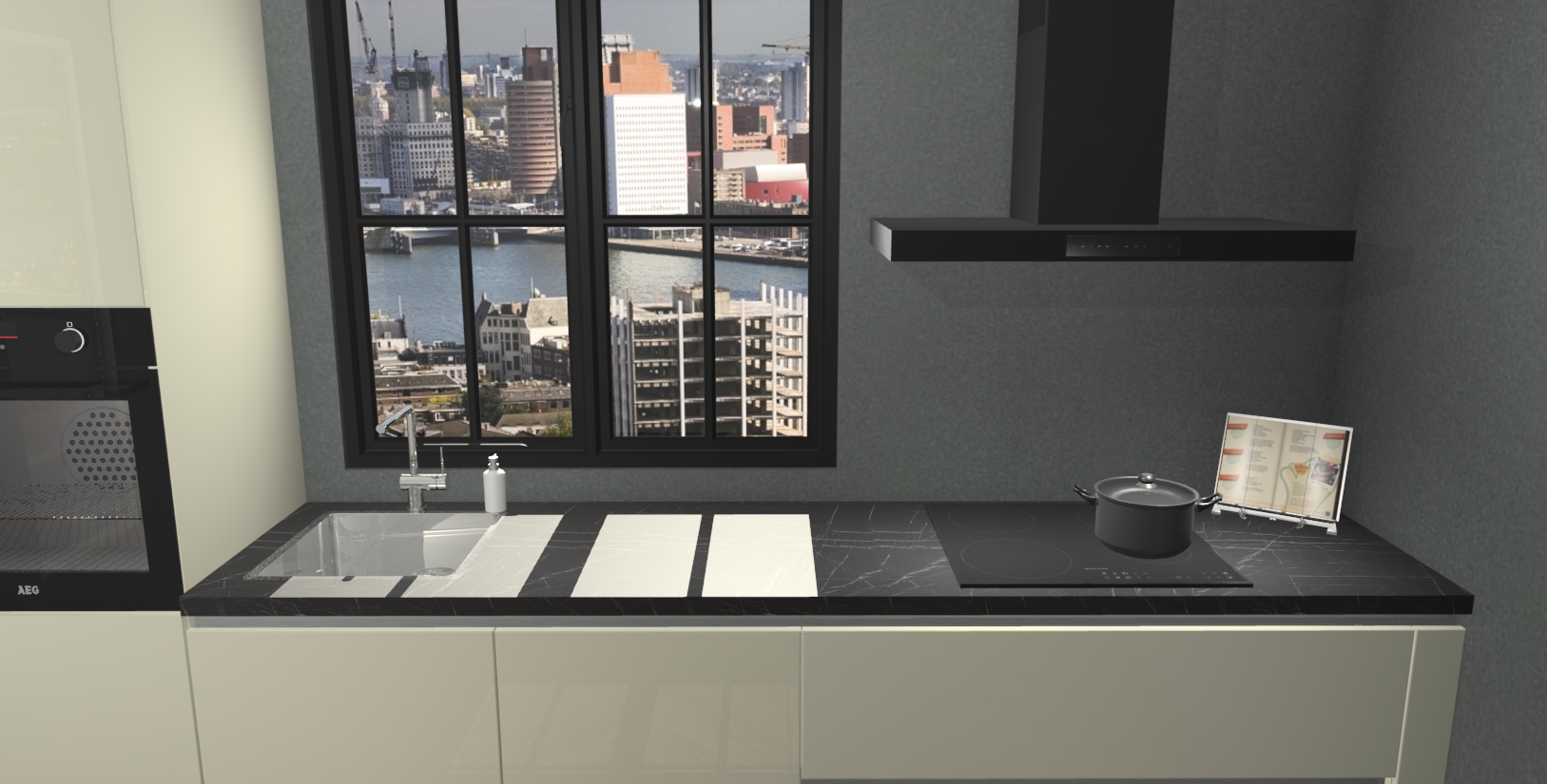 - Bij een hoekwerkblad zijn de hoeken in gevreesd en op maat gemaakt