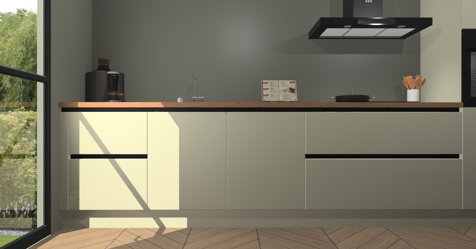 In deze box zijn alle kleuren verzameld van de deuren en werkbladen. Vraag de gratis kleurenbox aan en kijk thuis rustig verder!
