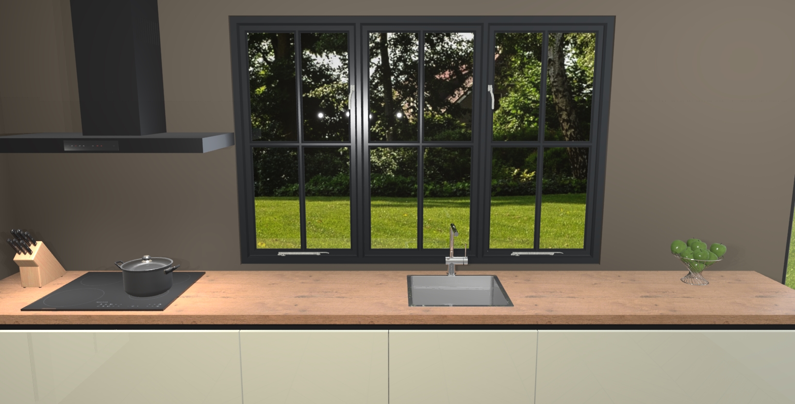 De softclose deuren openen en sluiten is ook heel eenvoudig - geniet van een moeiteloze keukenervaring, zelfs als er kinderen rondlopen. Voor extra gemak bij het plaatsen van uw bestelling bieden we ook een upgrade naar een kookplaat met geïntegreerde afzuiging.