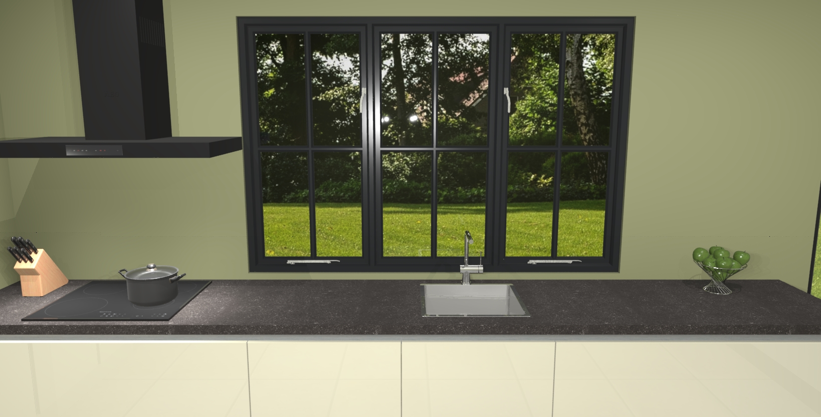 De softclose deuren openen en sluiten is ook heel eenvoudig - geniet van een moeiteloze keukenervaring, zelfs als er kinderen rondlopen. Voor extra gemak bij het plaatsen van uw bestelling bieden we ook een upgrade naar een kookplaat met geïntegreerde afzuiging.
