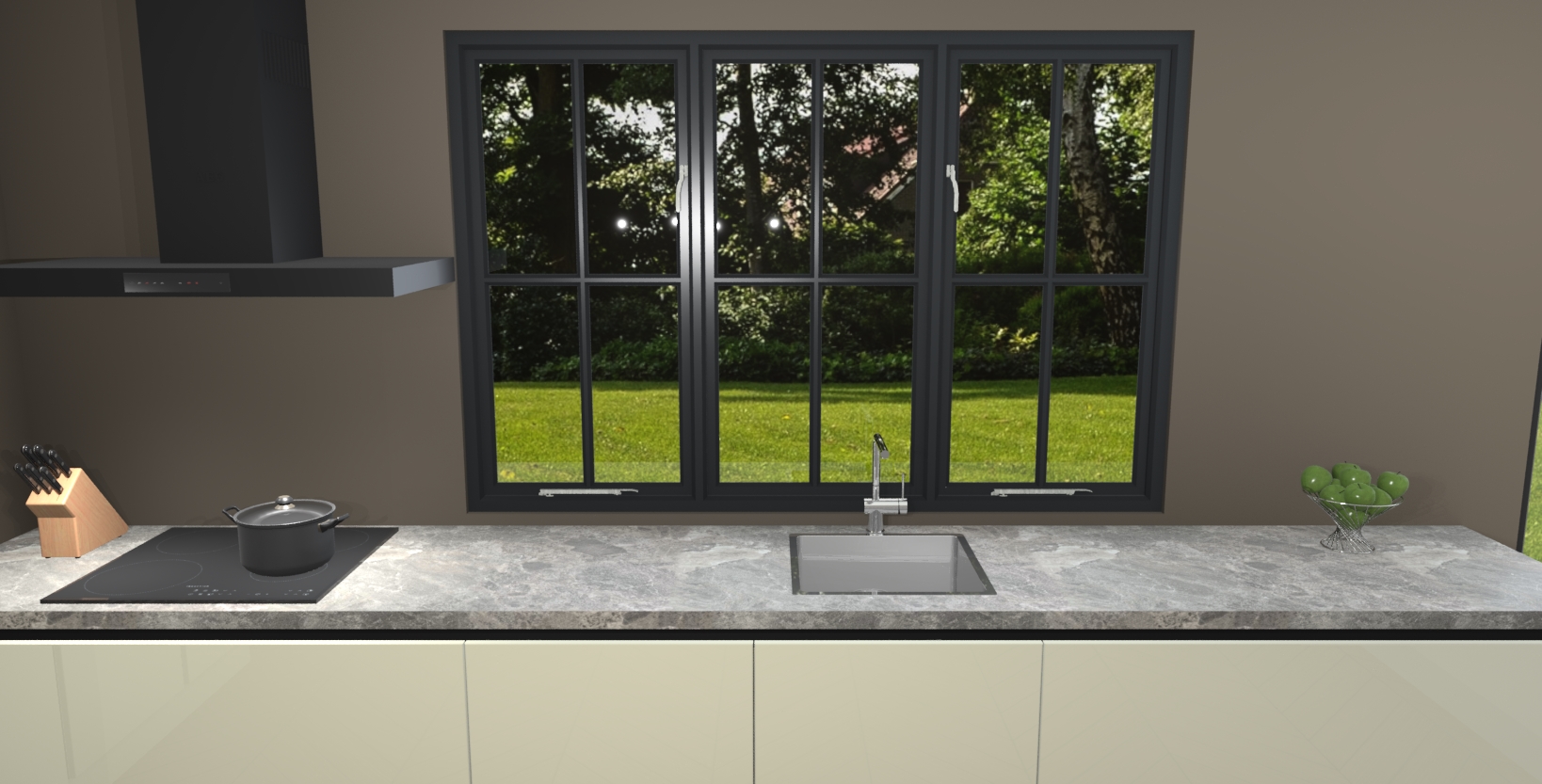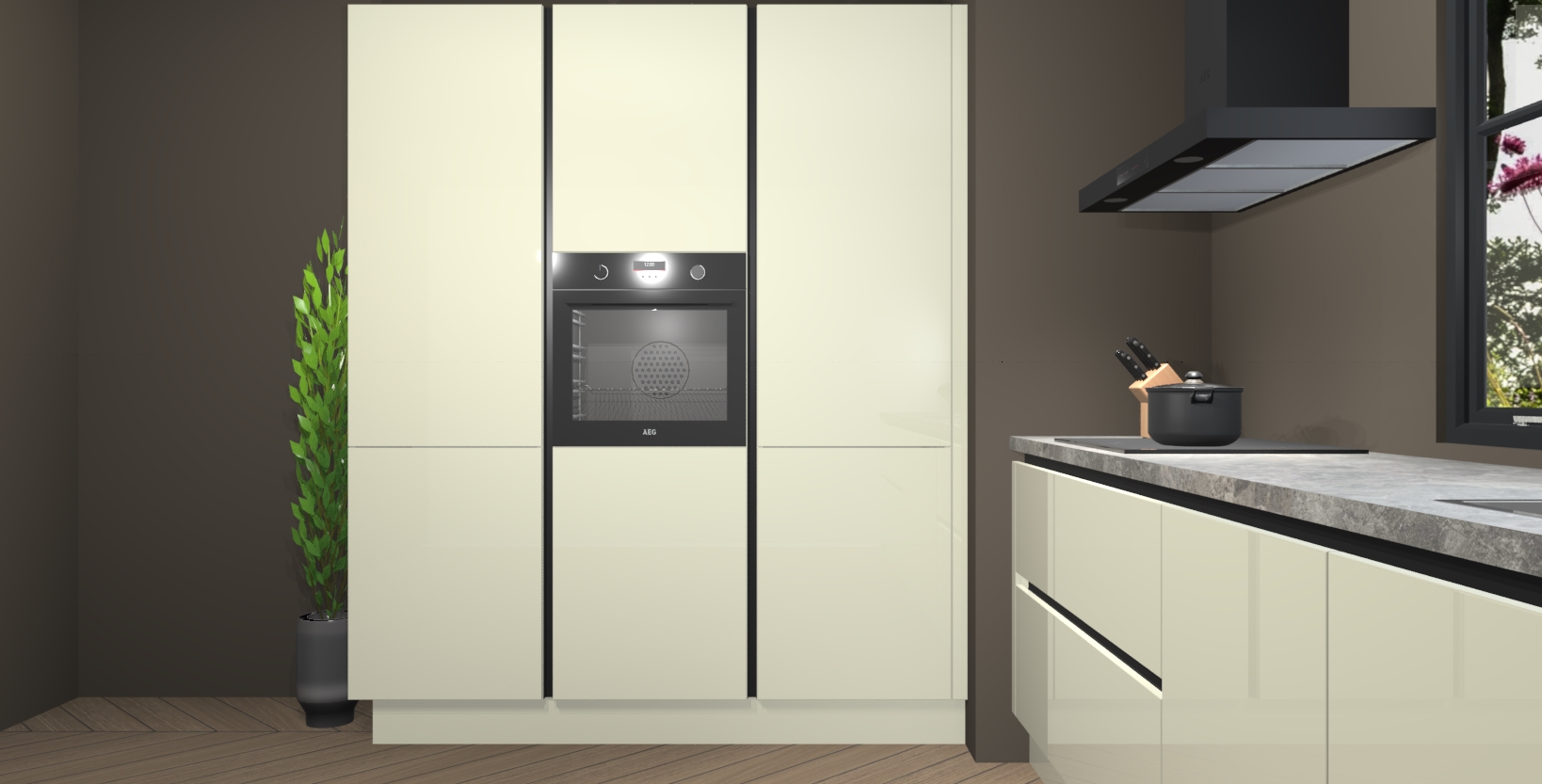 De softclose deuren openen en sluiten is ook heel eenvoudig - geniet van een moeiteloze keukenervaring, zelfs als er kinderen rondlopen. Voor extra gemak bij het plaatsen van uw bestelling bieden we ook een upgrade naar een kookplaat met geïntegreerde afzuiging.