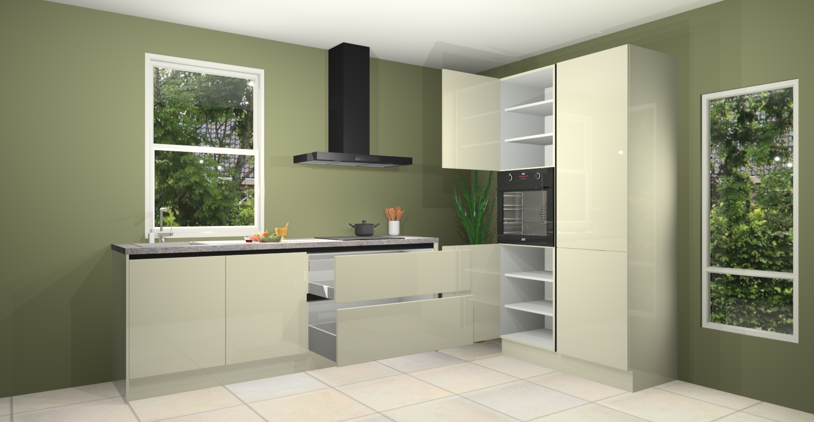De Magnolia hoogglans greeploze keuken Monaco heeft voldoende opbergruimte om uw keukenbenodigdheden georganiseerd en netjes te houden. Geniet van het gemak van de soft-close deuren, die deze stijlvolle look perfect afmaken. Maar dat is nog niet alles. Met de Magnolia hoogglans greeploze keuken Monaco krijgt u maar liefst 5 ingebouwde apparaten: een oven, inductiekookplaat, afzuigkap, vaatwasser en koelkast. Deze kunnen gemakkelijk worden geüpgraded naar AEG als ze besteld zijn.