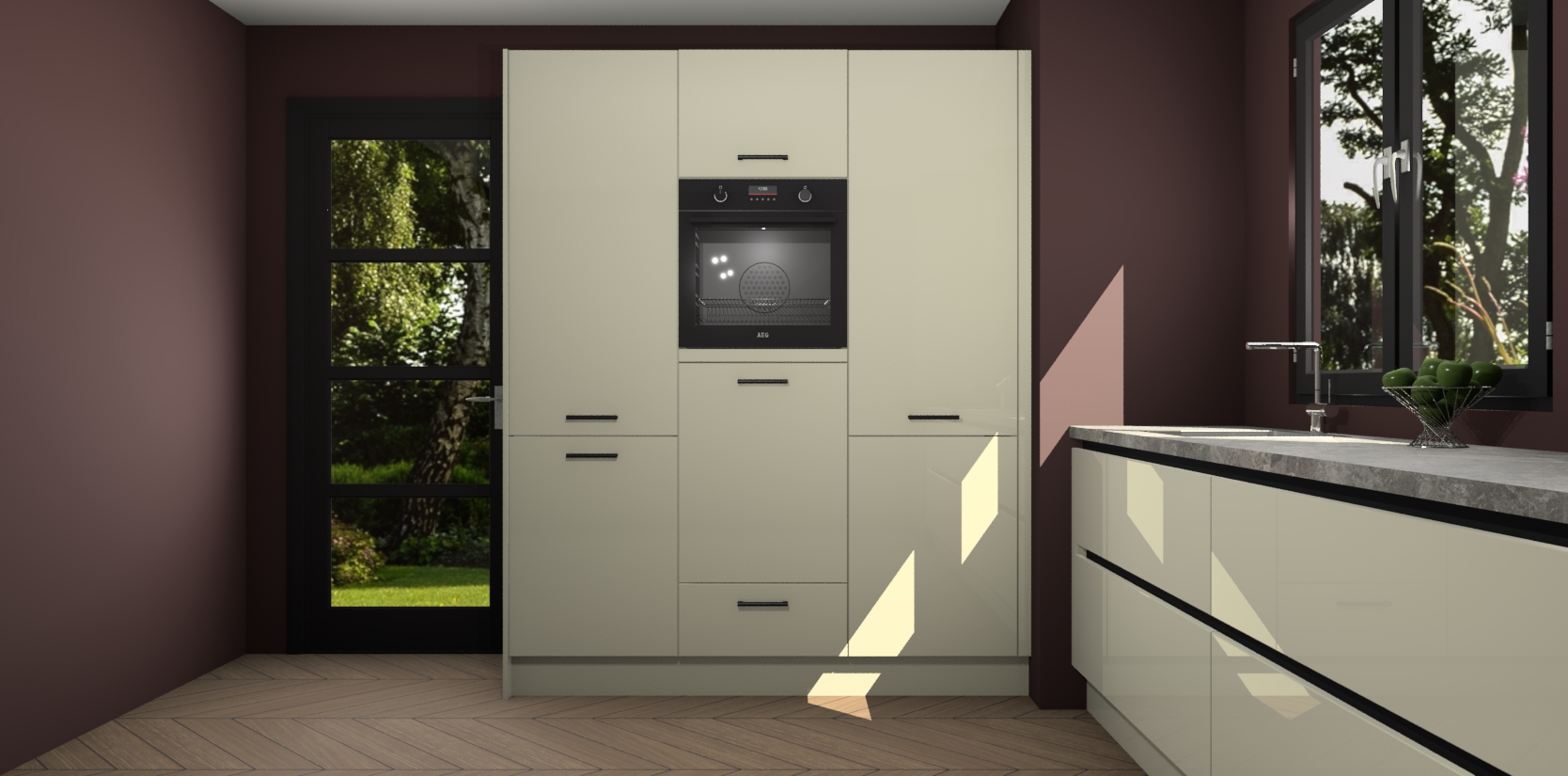 De softclose deuren openen en sluiten is ook heel eenvoudig - geniet van een moeiteloze keukenervaring, zelfs als er kinderen rondlopen. Voor extra gemak bij het plaatsen van uw bestelling bieden we ook een upgrade naar een kookplaat met geïntegreerde afzuiging.