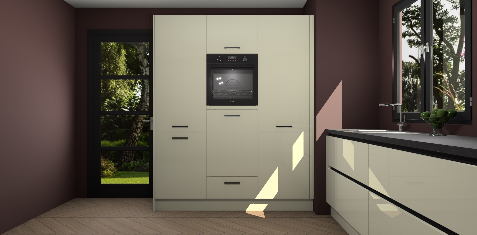 De softclose deuren openen en sluiten is ook heel eenvoudig - geniet van een moeiteloze keukenervaring, zelfs als er kinderen rondlopen. Voor extra gemak bij het plaatsen van uw bestelling bieden we ook een upgrade naar een kookplaat met geïntegreerde afzuiging.