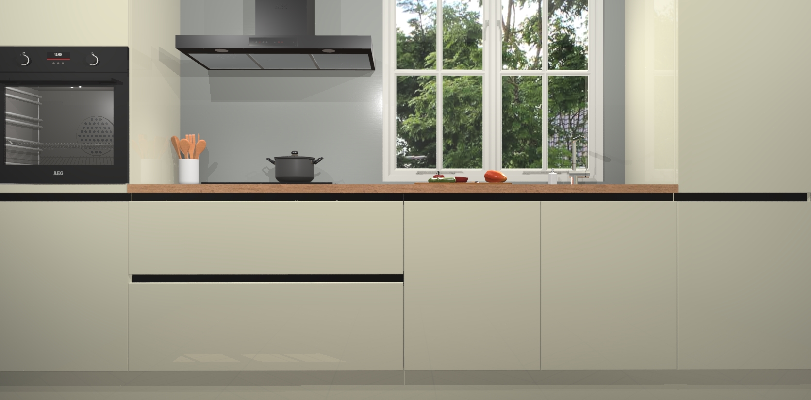 Inclusief plinten, stelpoten en werkblad