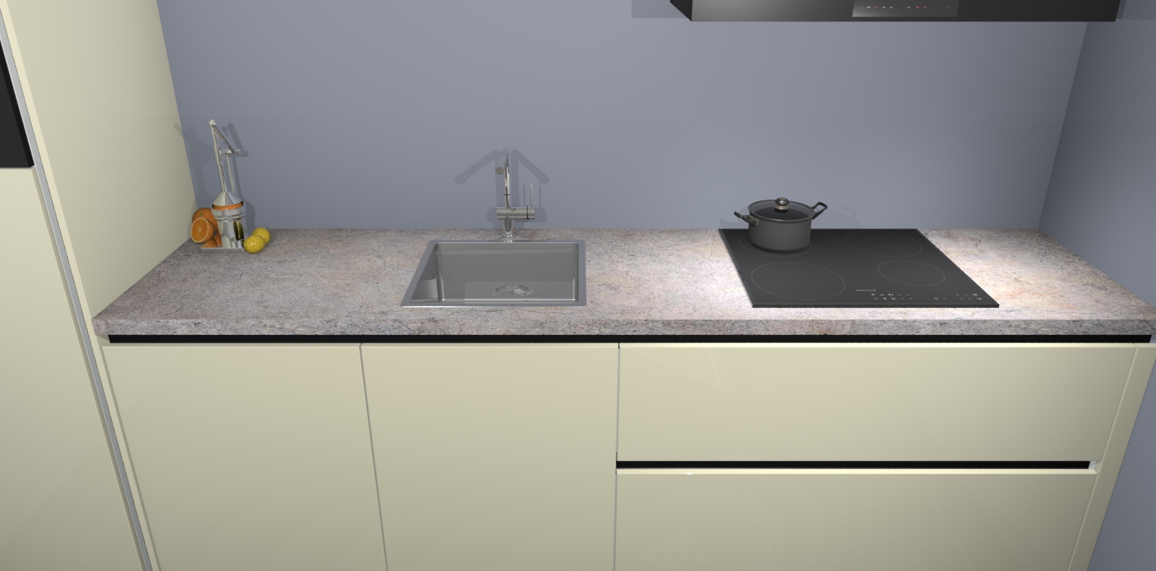 - Uitsparing van kookplaat, spoelbak en kraan dient u zelf te verzorgen.