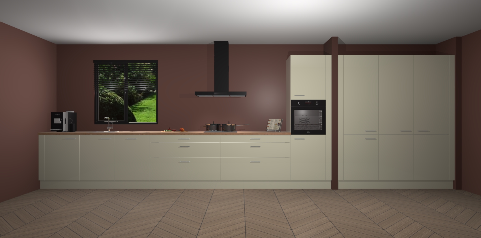 Een stijlvolle en praktische keuken als deze mag gezien worden. Dankzij de prachtige matte afwerking wordt de keuken gemakkelijk het middelpunt van uw huis - hij ziet er geweldig uit onder allerlei lichtomstandigheden, van dag tot nacht!