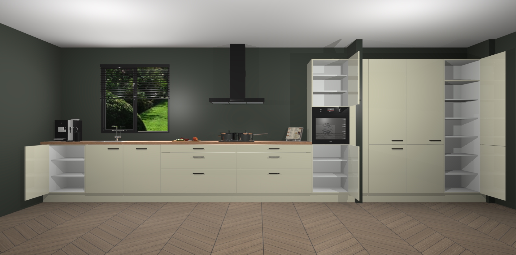 Een stijlvolle en praktische keuken als deze mag gezien worden. Dankzij de prachtige matte afwerking wordt de keuken gemakkelijk het middelpunt van uw huis - hij ziet er geweldig uit onder allerlei lichtomstandigheden, van dag tot nacht!