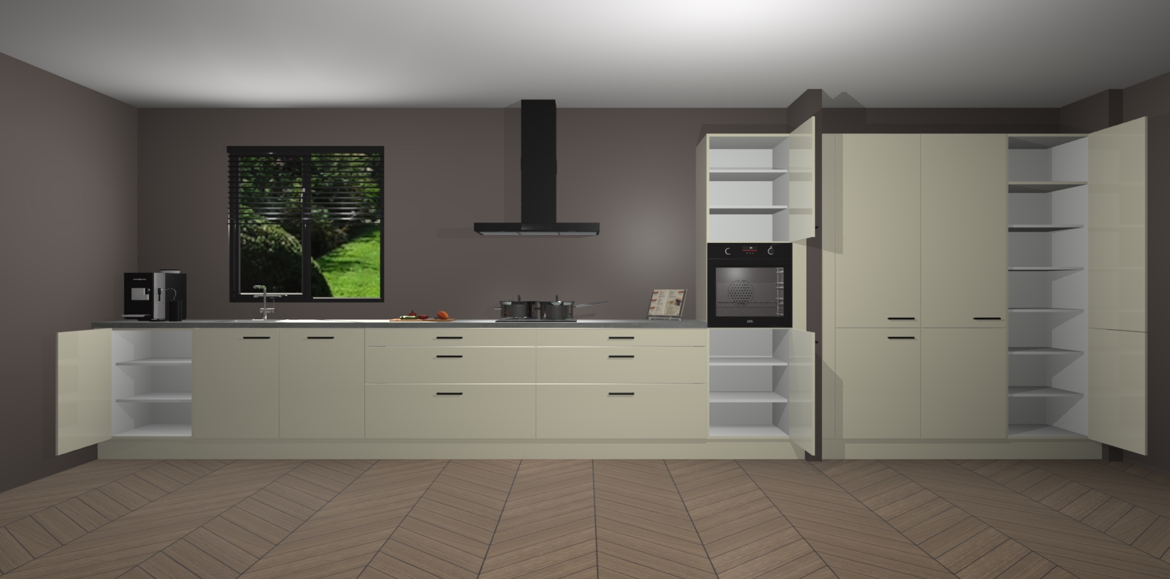 Een stijlvolle en praktische keuken als deze mag gezien worden. Dankzij de prachtige matte afwerking wordt de keuken gemakkelijk het middelpunt van uw huis - hij ziet er geweldig uit onder allerlei lichtomstandigheden, van dag tot nacht!