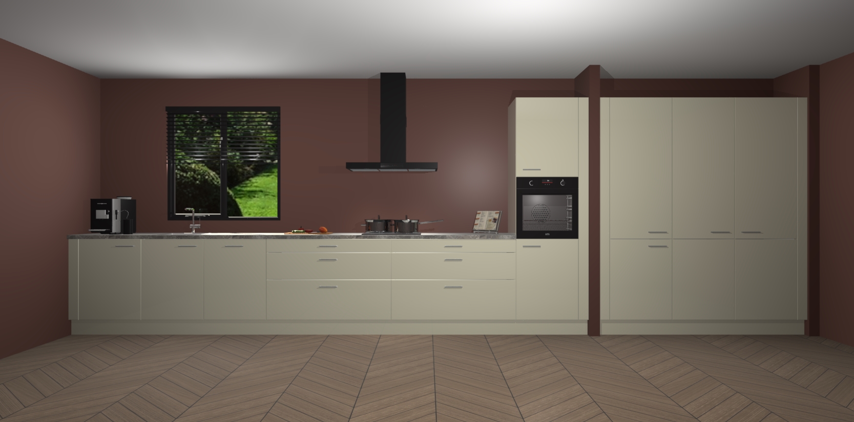 Een stijlvolle en praktische keuken als deze mag gezien worden. Dankzij de prachtige matte afwerking wordt de keuken gemakkelijk het middelpunt van uw huis - hij ziet er geweldig uit onder allerlei lichtomstandigheden, van dag tot nacht!