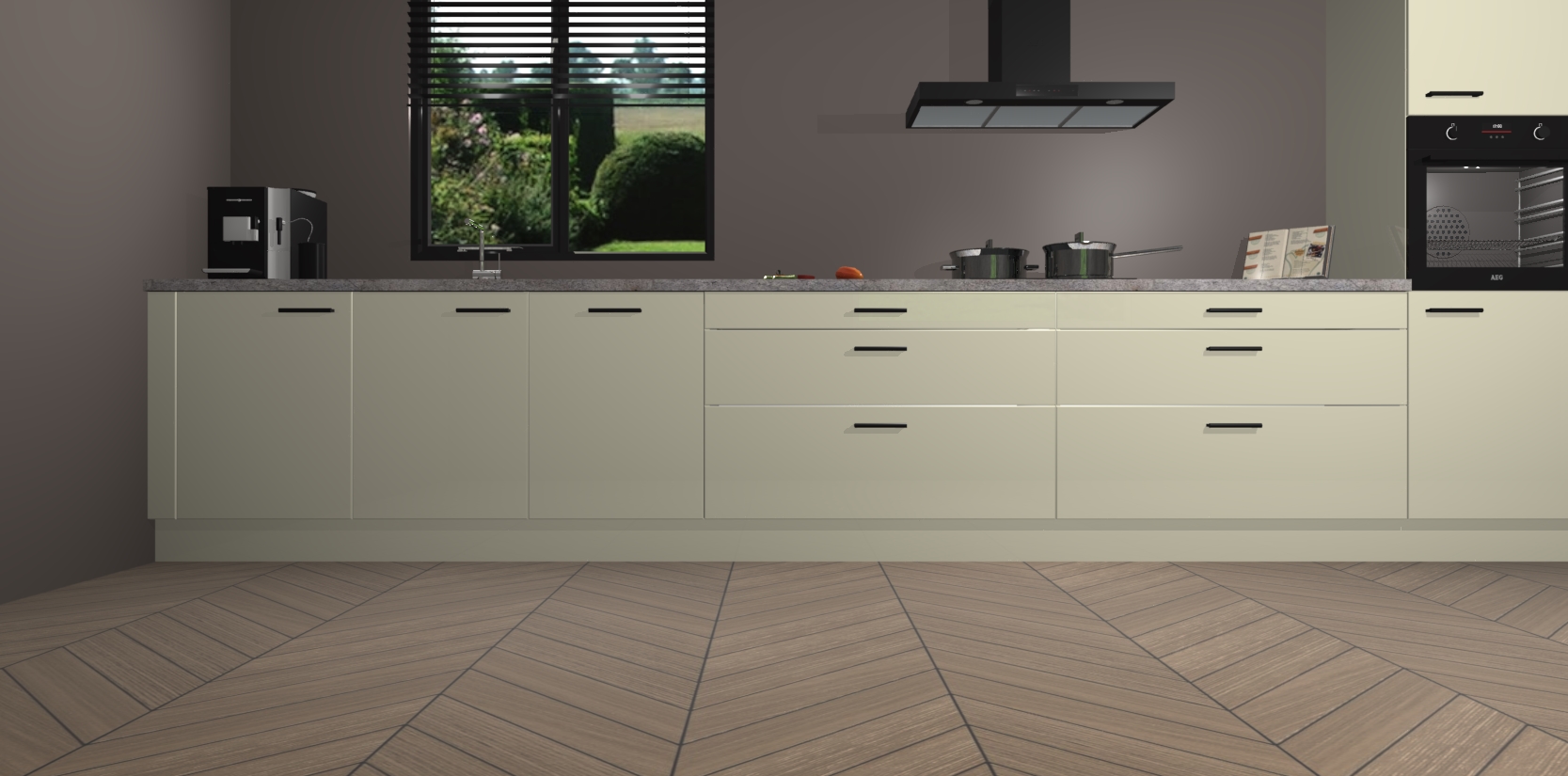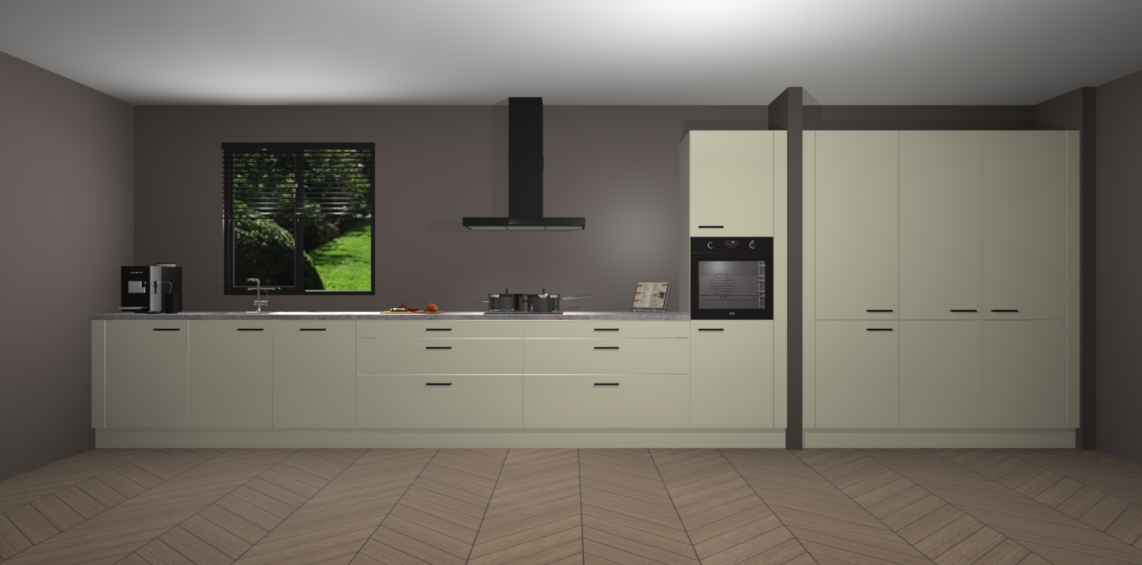 Een stijlvolle en praktische keuken als deze mag gezien worden. Dankzij de prachtige matte afwerking wordt de keuken gemakkelijk het middelpunt van uw huis - hij ziet er geweldig uit onder allerlei lichtomstandigheden, van dag tot nacht!