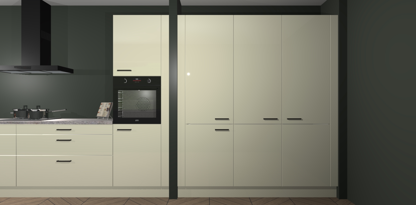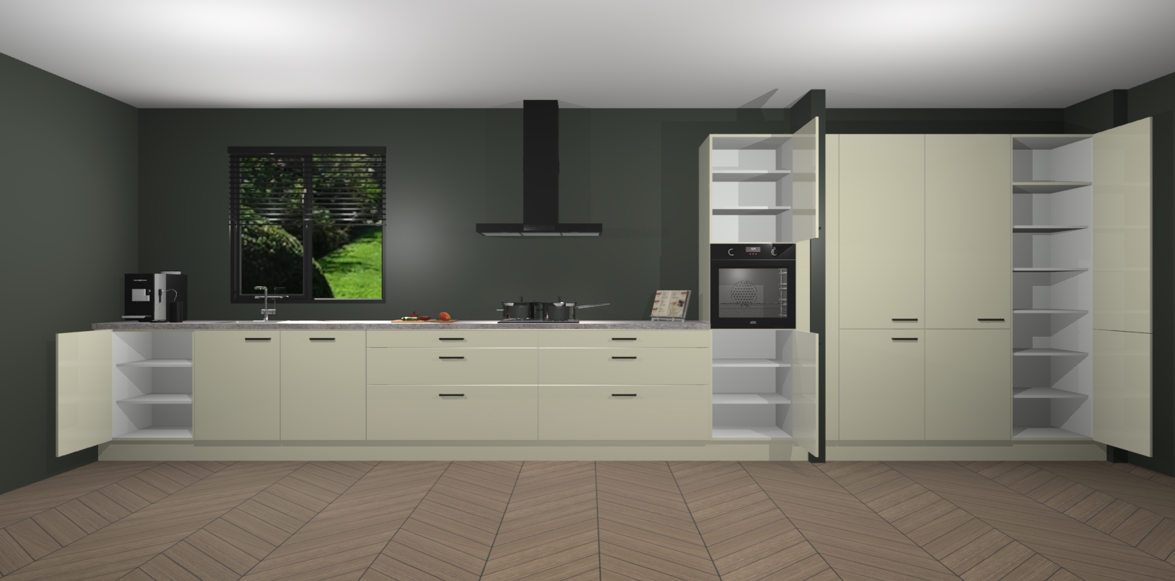 Een stijlvolle en praktische keuken als deze mag gezien worden. Dankzij de prachtige matte afwerking wordt de keuken gemakkelijk het middelpunt van uw huis - hij ziet er geweldig uit onder allerlei lichtomstandigheden, van dag tot nacht!