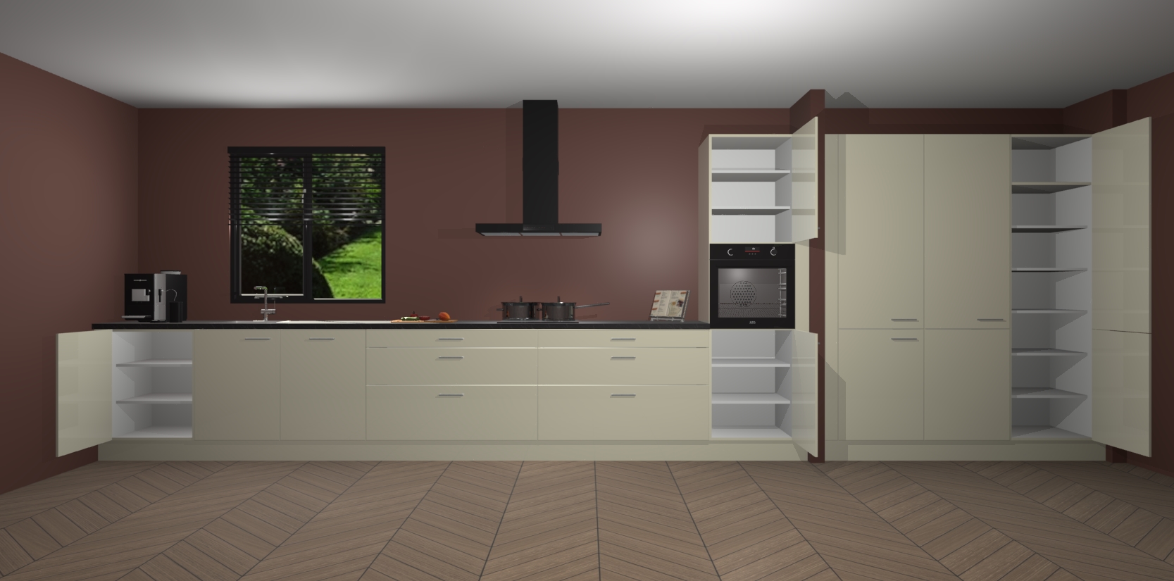 Een stijlvolle en praktische keuken als deze mag gezien worden. Dankzij de prachtige matte afwerking wordt de keuken gemakkelijk het middelpunt van uw huis - hij ziet er geweldig uit onder allerlei lichtomstandigheden, van dag tot nacht!