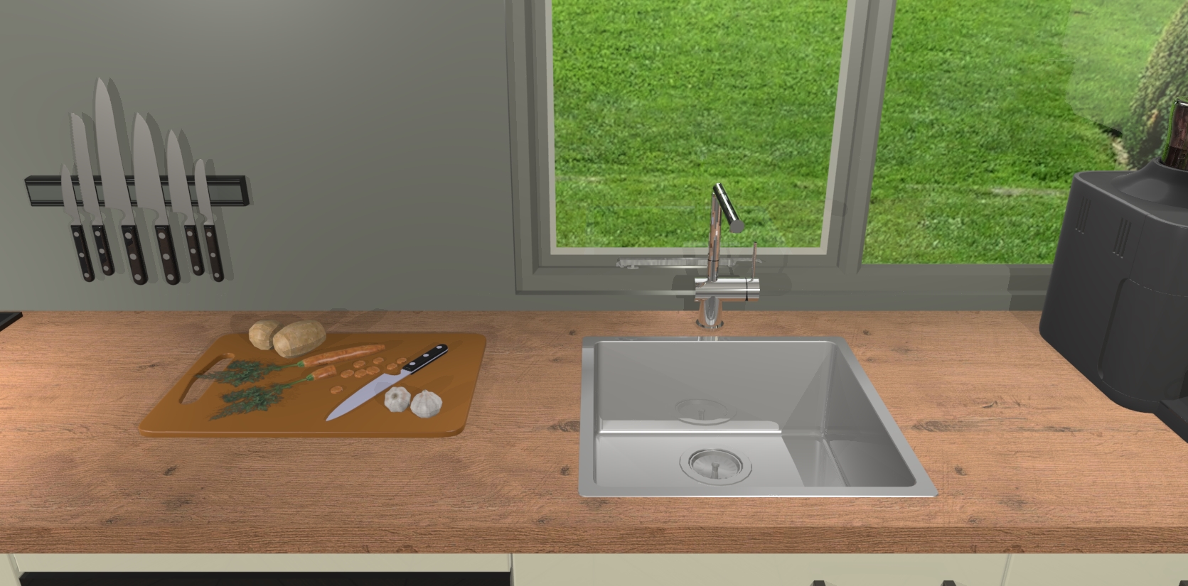 - De spoelbak is nog niet in gevreesd. Dit dient tijdens het werk gedaan te worden