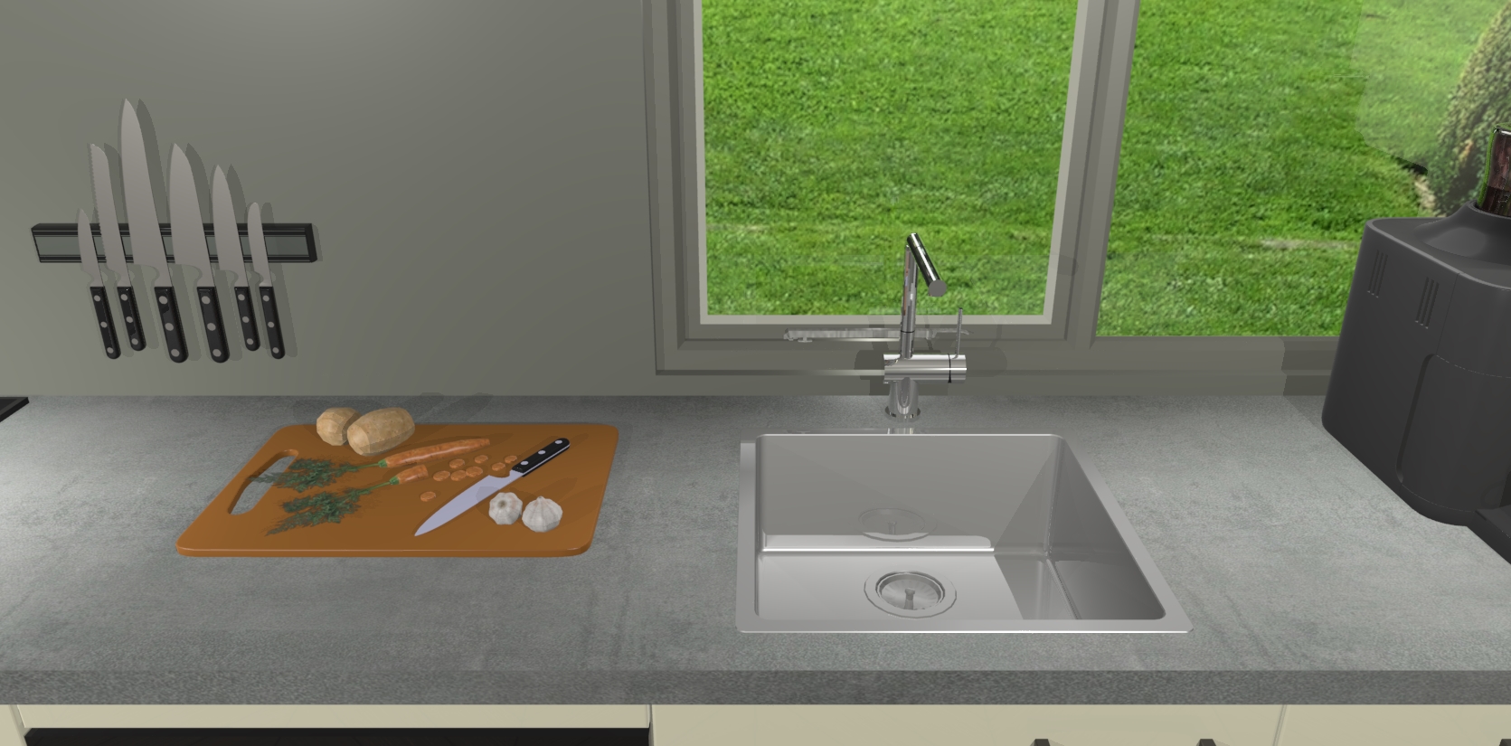 - De spoelbak is nog niet in gevreesd. Dit dient tijdens het werk gedaan te worden
