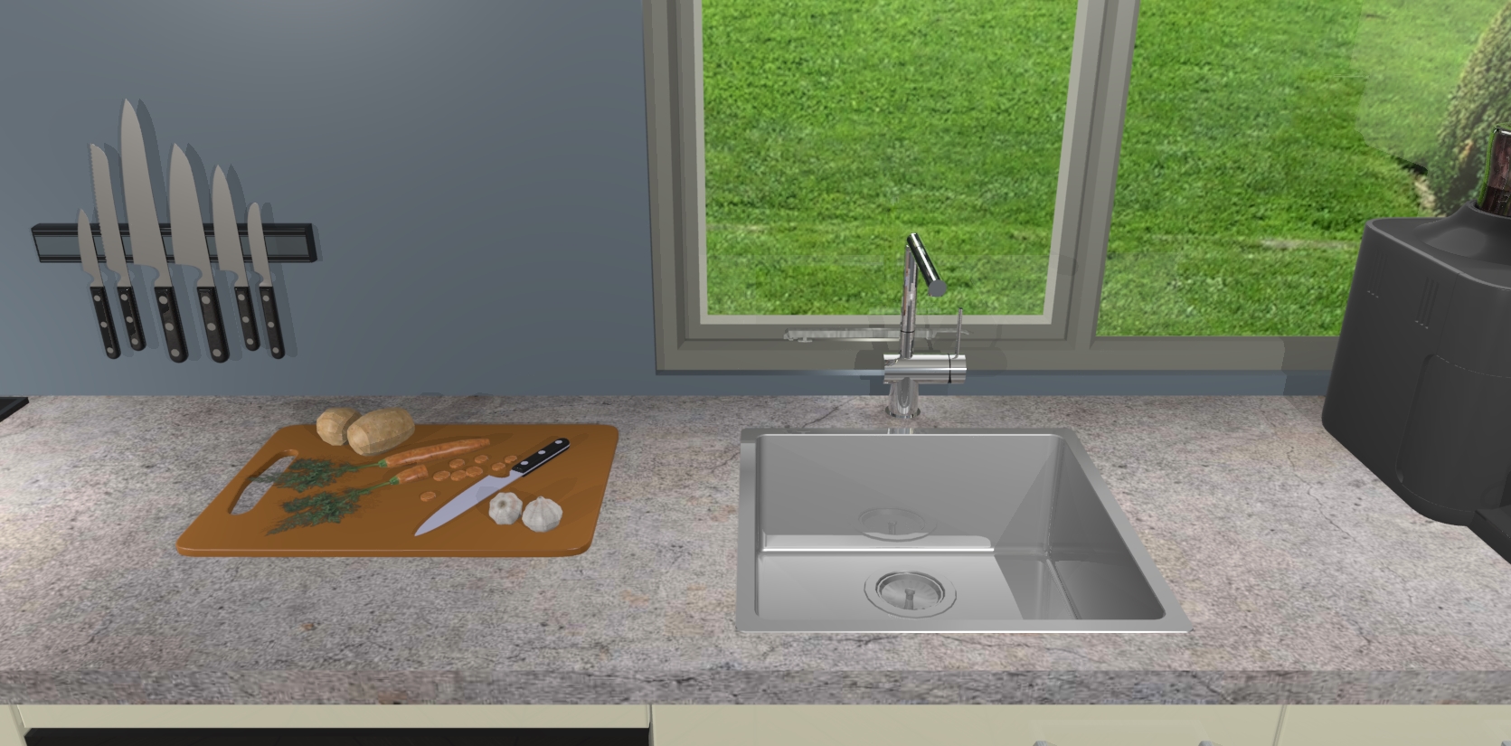 • De spoelbak is nog niet in gevreesd. Dit dient tijdens het werk gedaan te worden