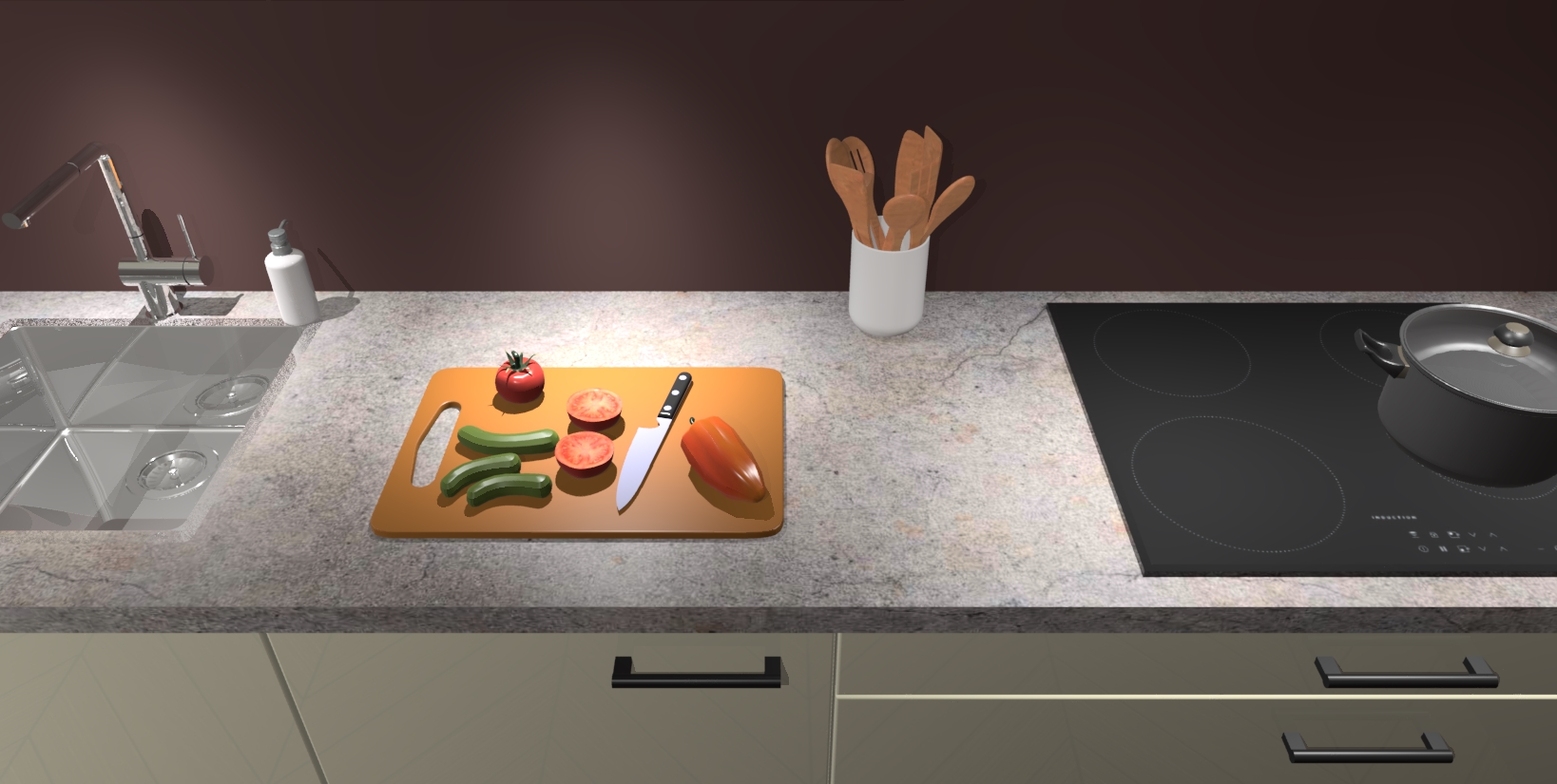 - Uitsparing van kookplaat, spoelbak en kraan dient u zelf te verzorgen.