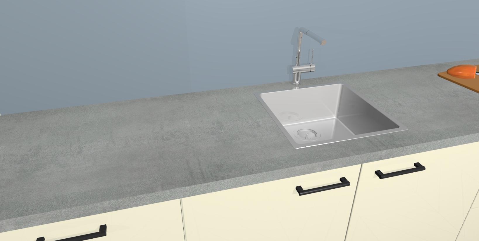 - De spoelbak is nog niet in gevreesd. Dit dient tijdens het werk gedaan te worden