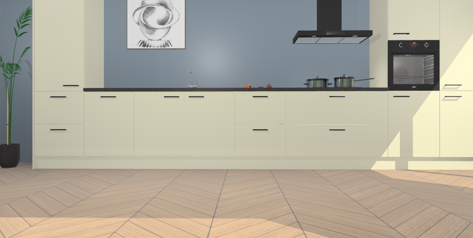 Inclusief plinten, stelpoten en werkblad