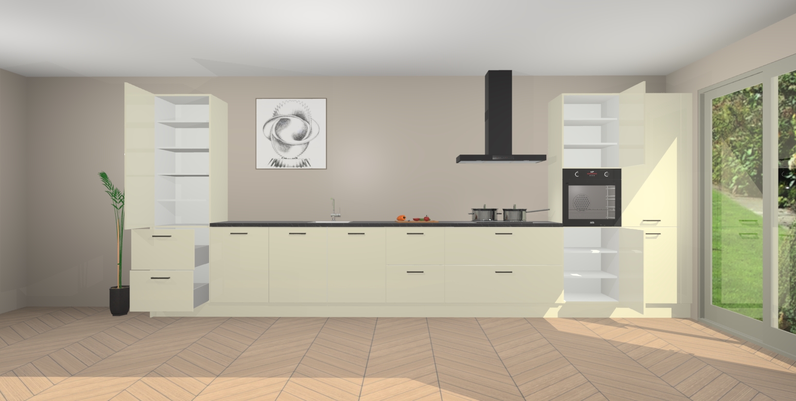 Inclusief plinten, stelpoten en werkblad