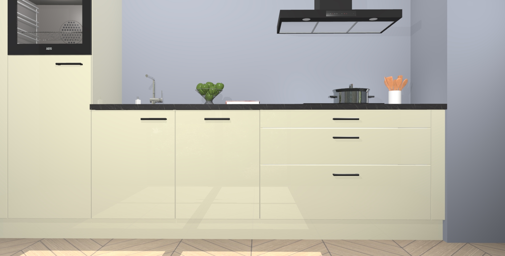 Inclusief plinten, stelpoten en werkblad