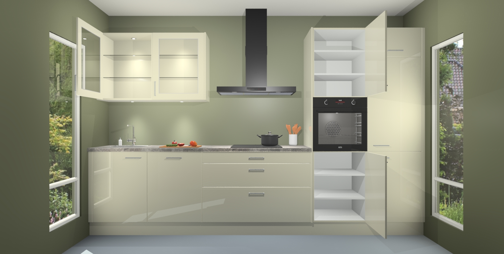 De magnolia hoogglans keuken Cairo is de perfecte mix van modern en tijdloos design. Met zijn prachtige glazen deuren op de bovenkastjes voegt hij echt iets speciaals en unieks toe aan elke keuken. En met vijf ingebouwde apparaten inbegrepen - een oven, inductiekookplaat, afzuigkap, vaatwasser en koelkast - kunt u deze keuken echt helemaal van uzelf maken! U kunt na bestelling ook upgraden naar AEG voor een nog hogere kwaliteitservaring.