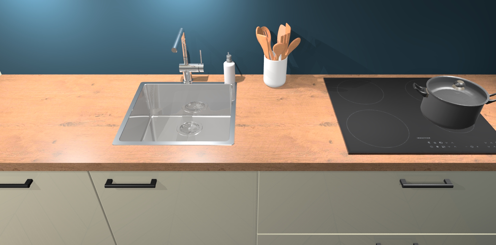 - Uitsparing van kookplaat, spoelbak en kraan dient u zelf te verzorgen.