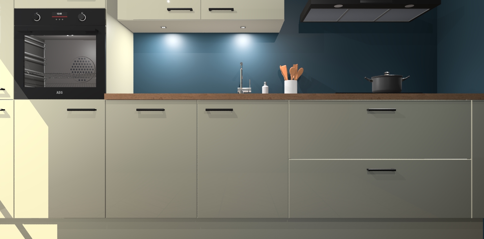 Inclusief plinten, stelpoten en werkblad