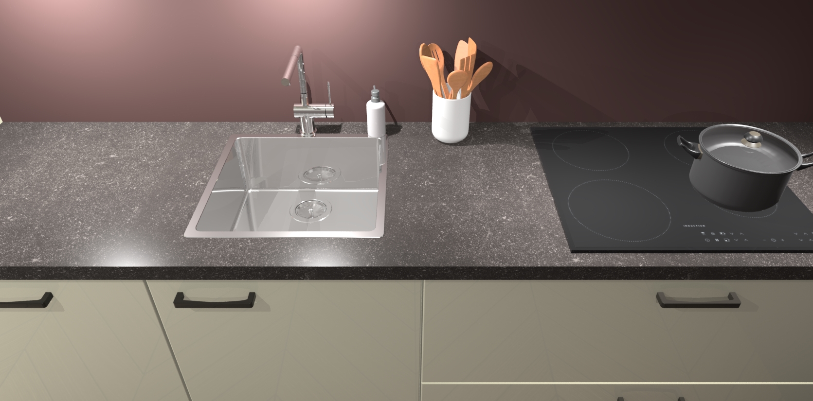 - Uitsparing van kookplaat, spoelbak en kraan dient u zelf te verzorgen.