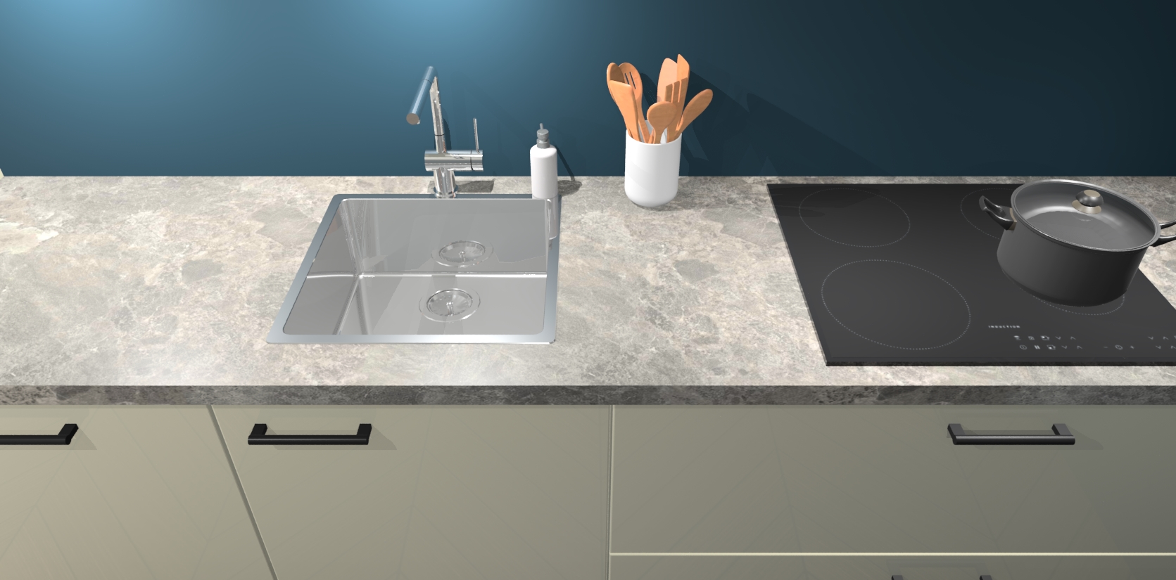 - Uitsparing van kookplaat, spoelbak en kraan dient u zelf te verzorgen.