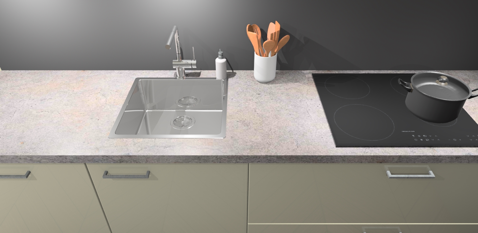 - Uitsparing van kookplaat, spoelbak en kraan dient u zelf te verzorgen.