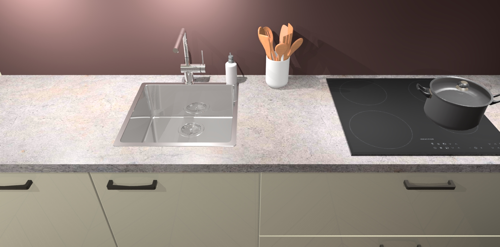 - Uitsparing van kookplaat, spoelbak en kraan dient u zelf te verzorgen.