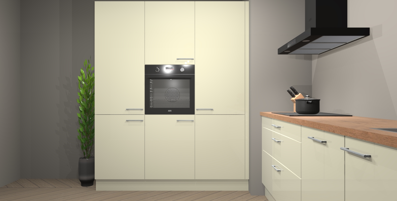 De softclose deuren openen en sluiten is ook heel eenvoudig - geniet van een moeiteloze keukenervaring, zelfs als er kinderen rondlopen. Voor extra gemak bij het plaatsen van uw bestelling bieden we ook een upgrade naar een kookplaat met geïntegreerde afzuiging.