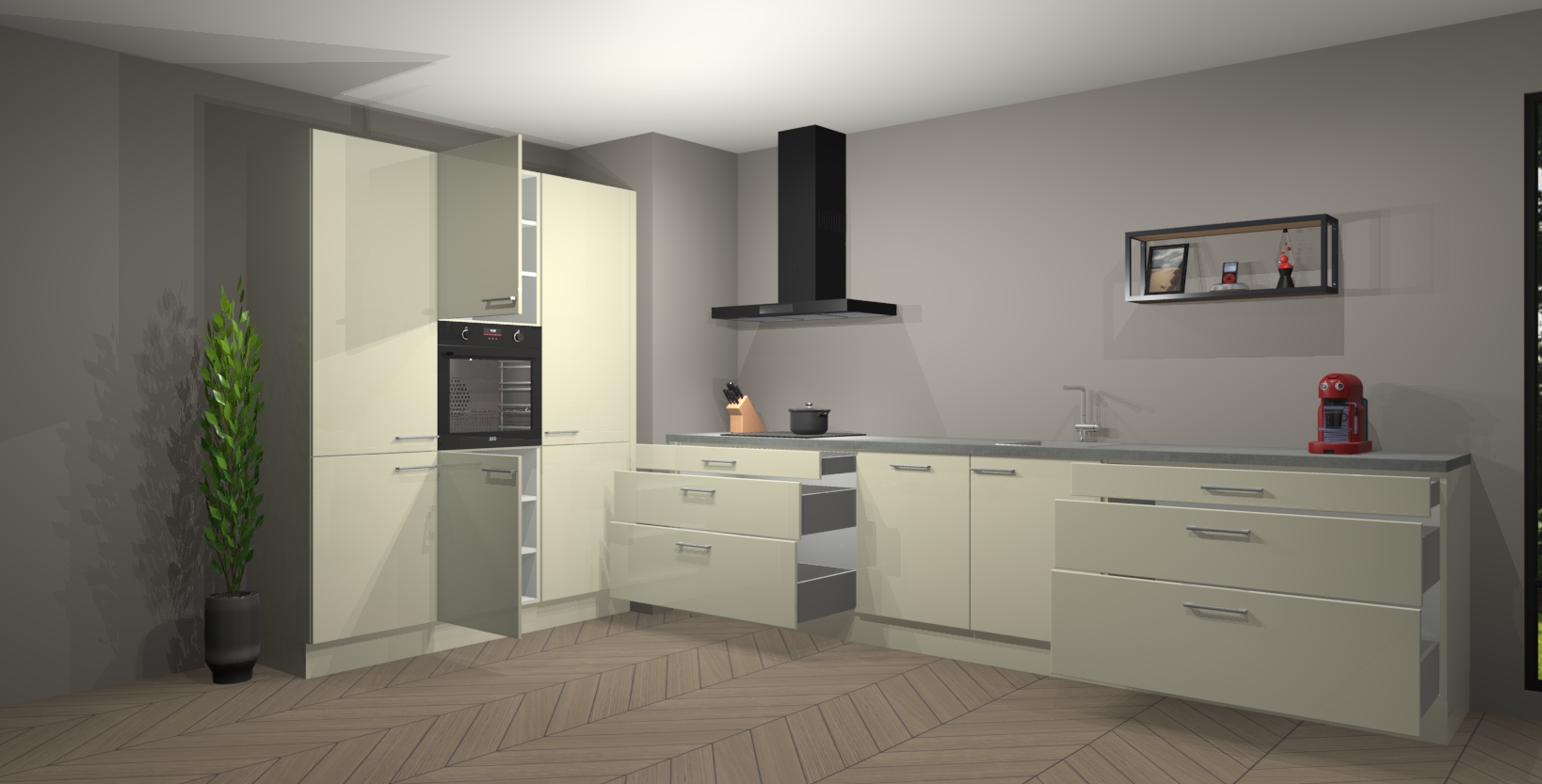 Inclusief plinten, stelpoten en werkblad