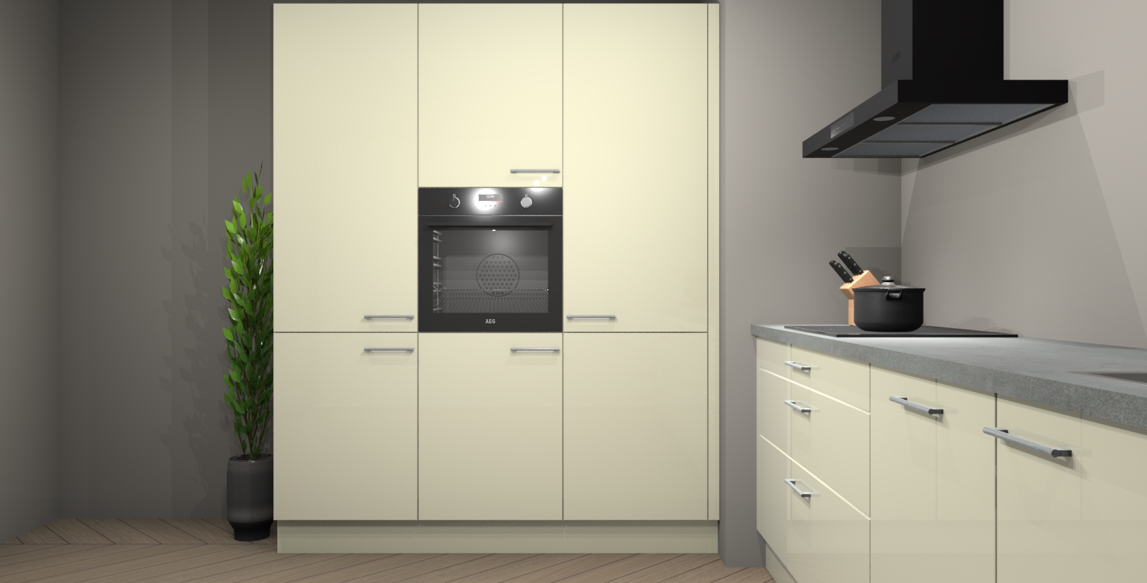 De softclose deuren openen en sluiten is ook heel eenvoudig - geniet van een moeiteloze keukenervaring, zelfs als er kinderen rondlopen. Voor extra gemak bij het plaatsen van uw bestelling bieden we ook een upgrade naar een kookplaat met geïntegreerde afzuiging.