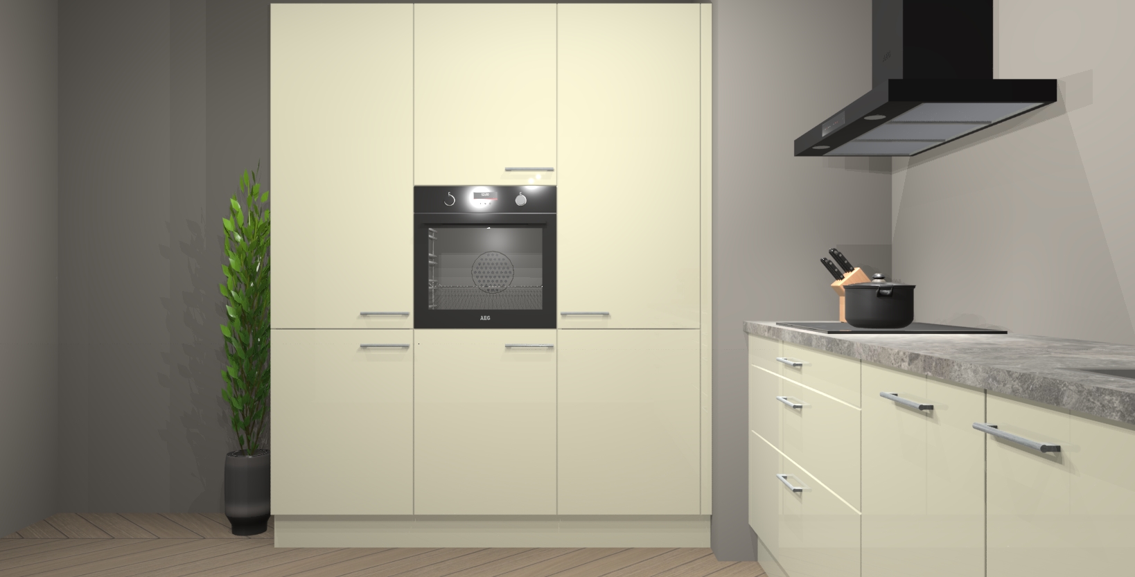 De softclose deuren openen en sluiten is ook heel eenvoudig - geniet van een moeiteloze keukenervaring, zelfs als er kinderen rondlopen. Voor extra gemak bij het plaatsen van uw bestelling bieden we ook een upgrade naar een kookplaat met geïntegreerde afzuiging.