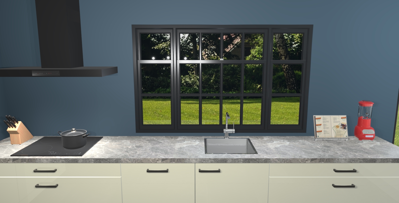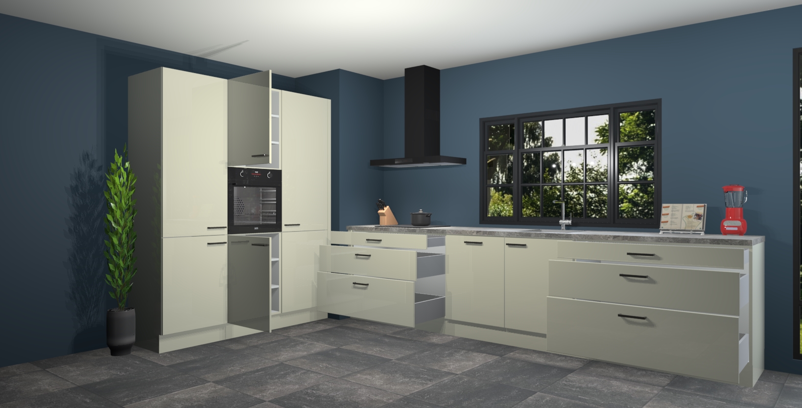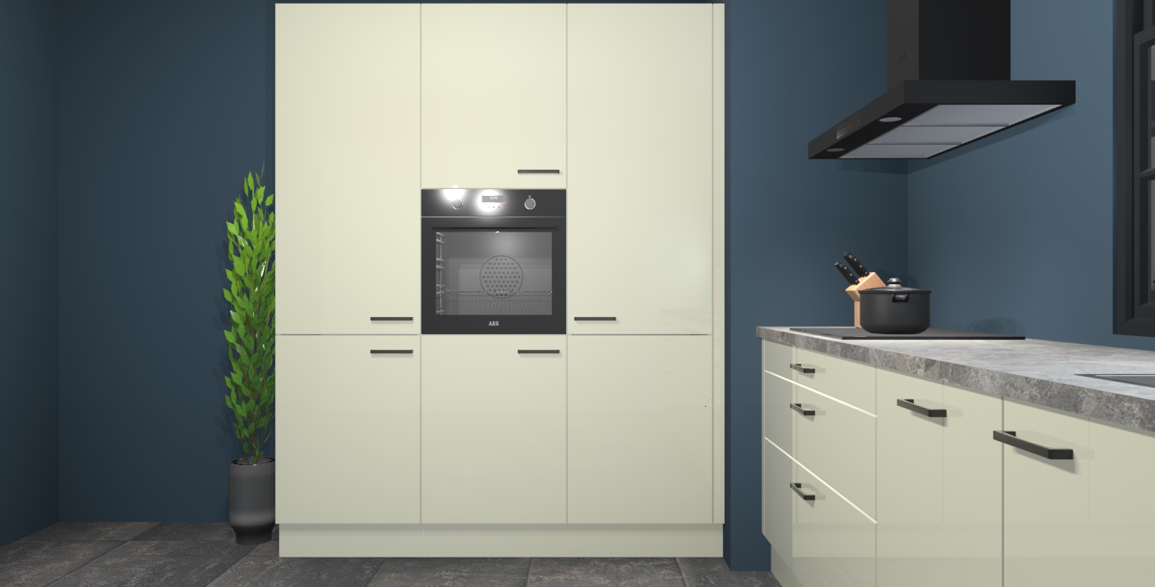 De softclose deuren openen en sluiten is ook heel eenvoudig - geniet van een moeiteloze keukenervaring, zelfs als er kinderen rondlopen. Voor extra gemak bij het plaatsen van uw bestelling bieden we ook een upgrade naar een kookplaat met geïntegreerde afzuiging.