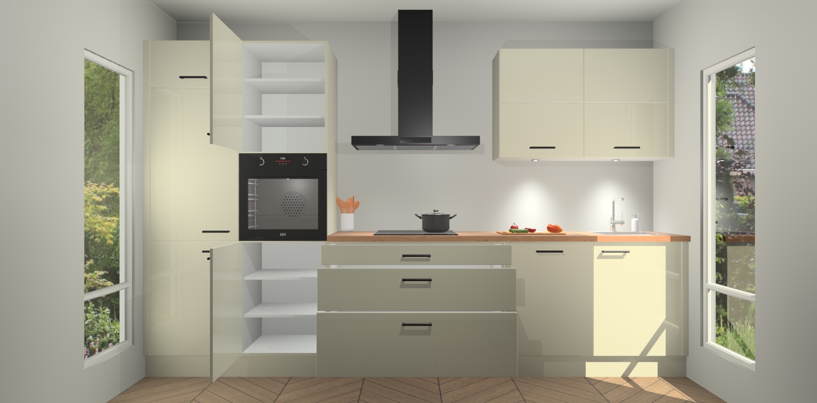 Inclusief plinten, stelpoten en werkblad