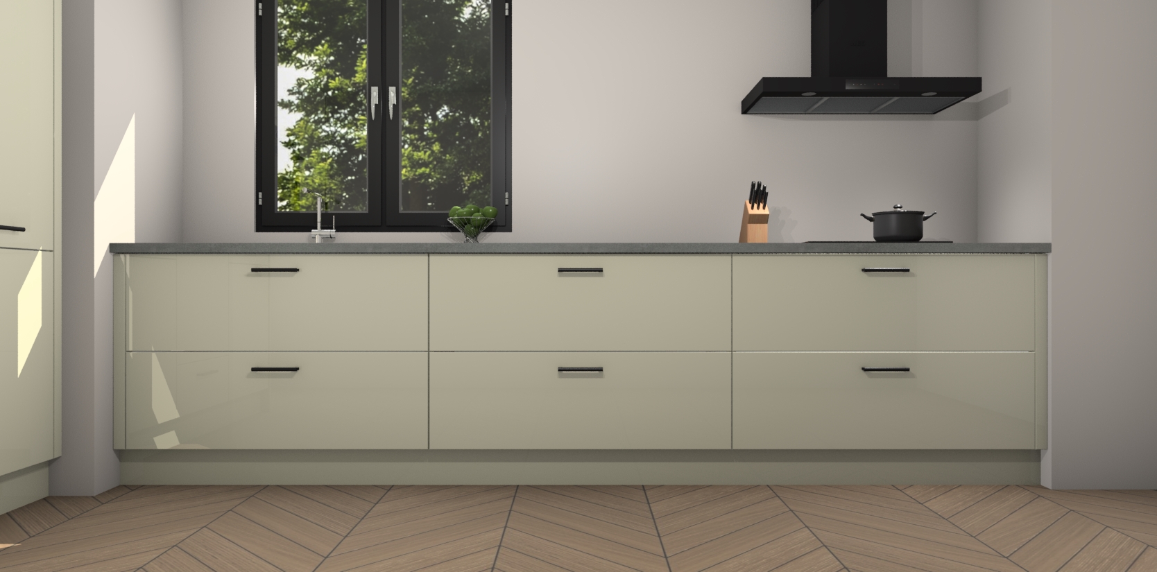 De softclose deuren openen en sluiten is ook heel eenvoudig - geniet van een moeiteloze keukenervaring, zelfs als er kinderen rondlopen. Voor extra gemak bij het plaatsen van uw bestelling bieden we ook een upgrade naar een kookplaat met geïntegreerde afzuiging.
