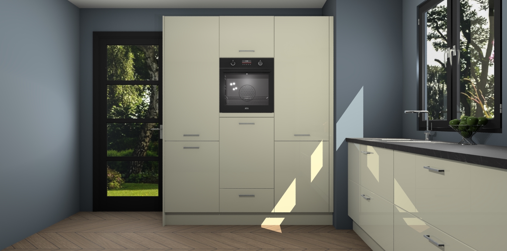 De softclose deuren openen en sluiten is ook heel eenvoudig - geniet van een moeiteloze keukenervaring, zelfs als er kinderen rondlopen. Voor extra gemak bij het plaatsen van uw bestelling bieden we ook een upgrade naar een kookplaat met geïntegreerde afzuiging.
