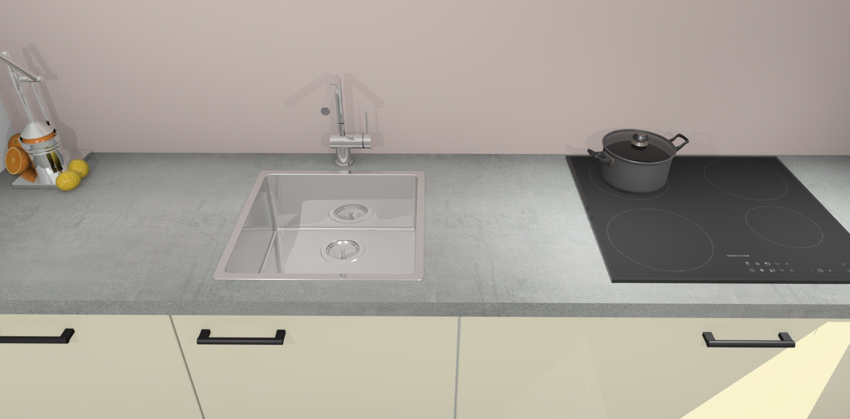- Uitsparing van kookplaat, spoelbak en kraan dient u zelf te verzorgen.