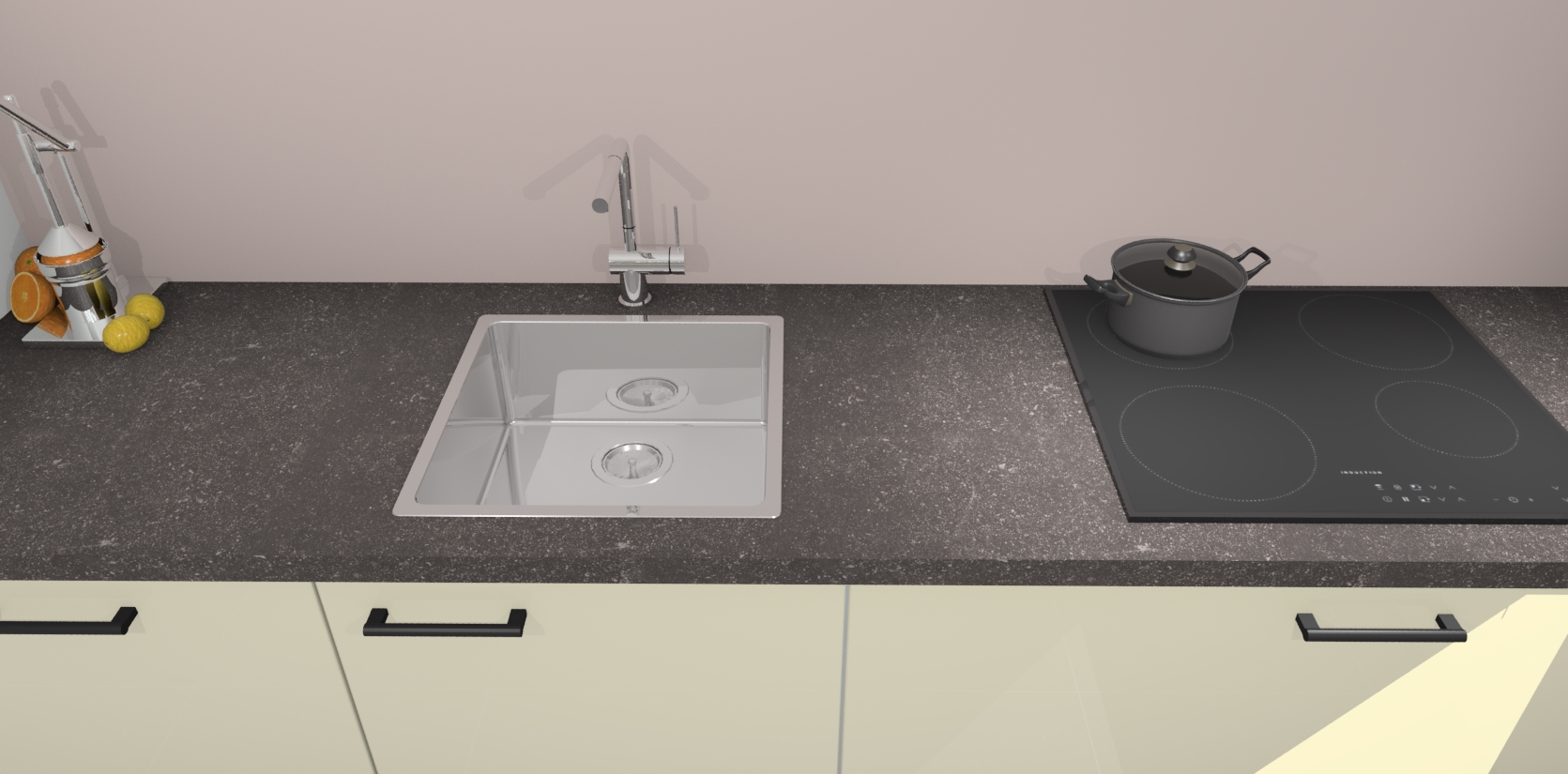 - Uitsparing van kookplaat, spoelbak en kraan dient u zelf te verzorgen.