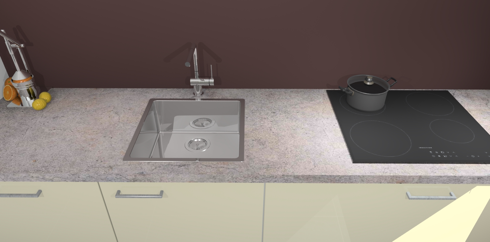 - Uitsparing van kookplaat, spoelbak en kraan dient u zelf te verzorgen.