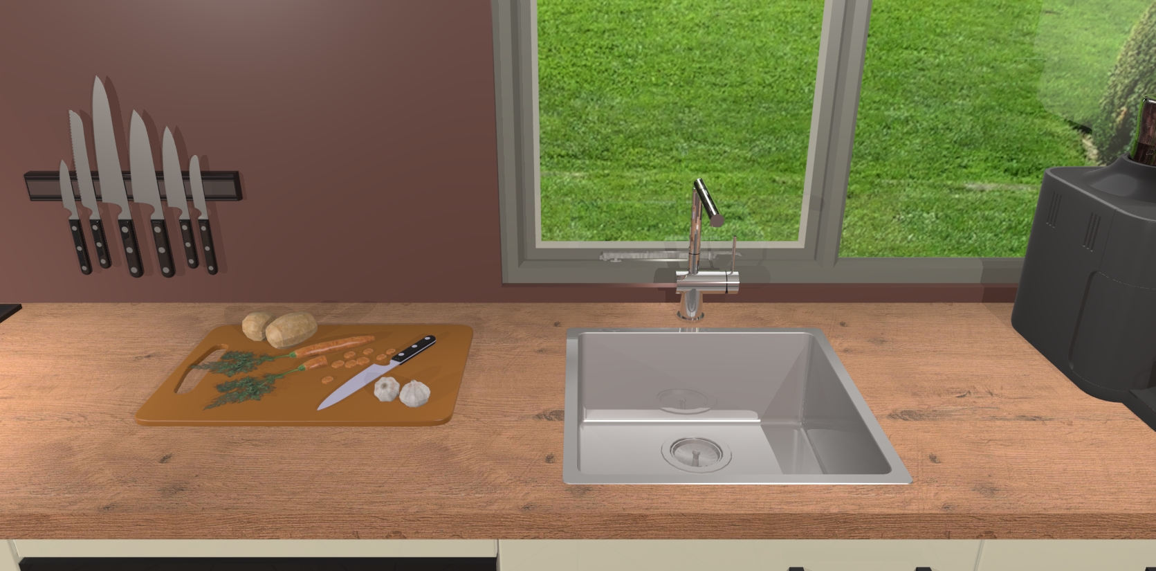 - De spoelbak is nog niet in gevreesd. Dit dient tijdens het werk gedaan te worden