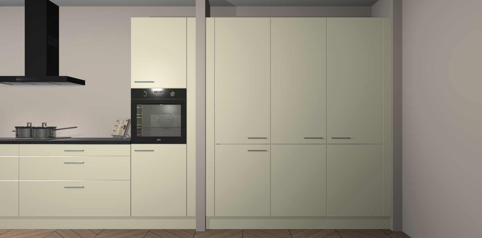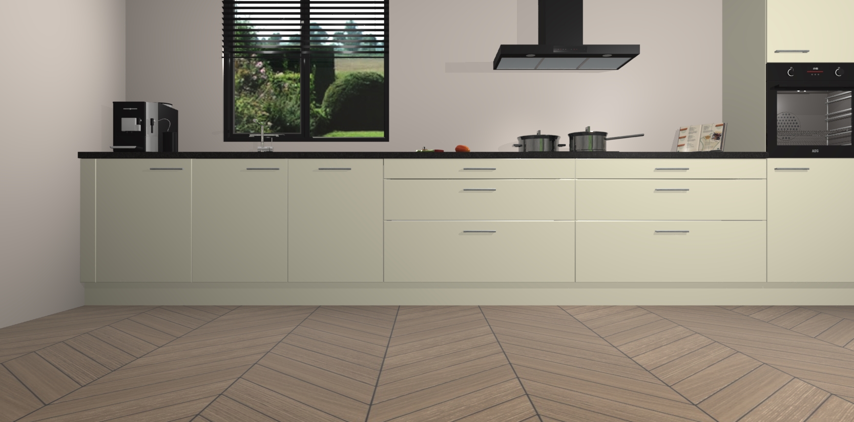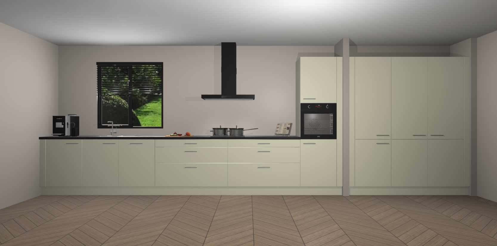 Een stijlvolle en praktische keuken als deze mag gezien worden. Dankzij de prachtige matte afwerking wordt de keuken gemakkelijk het middelpunt van uw huis - hij ziet er geweldig uit onder allerlei lichtomstandigheden, van dag tot nacht!