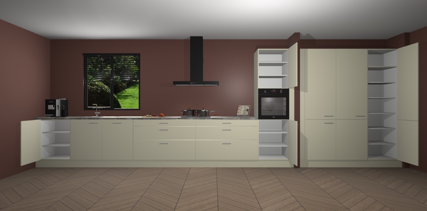 Een stijlvolle en praktische keuken als deze mag gezien worden. Dankzij de prachtige matte afwerking wordt de keuken gemakkelijk het middelpunt van uw huis - hij ziet er geweldig uit onder allerlei lichtomstandigheden, van dag tot nacht!