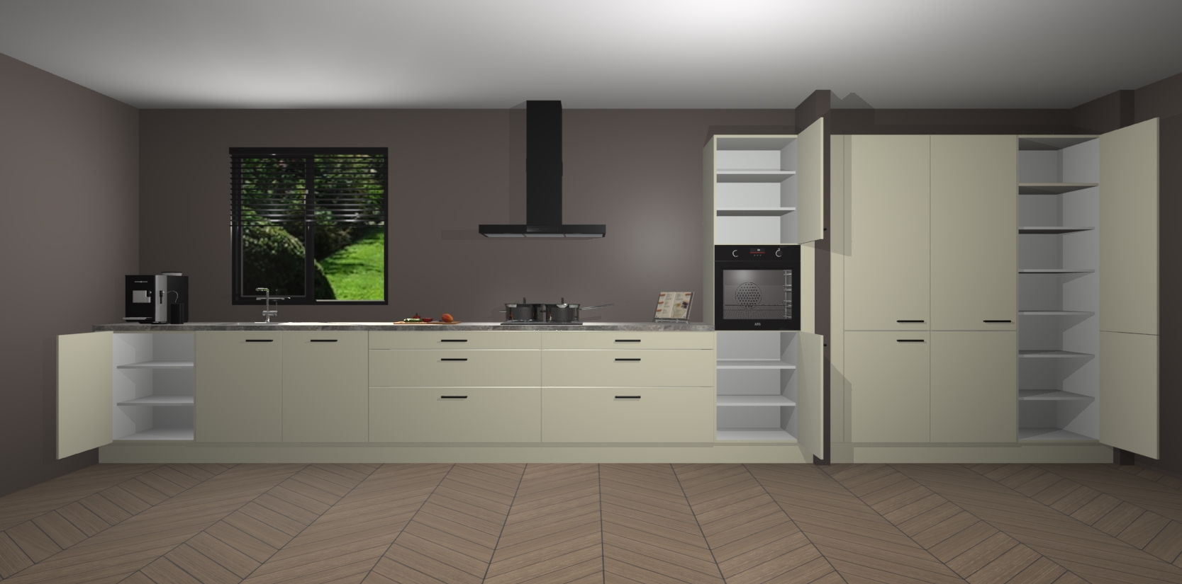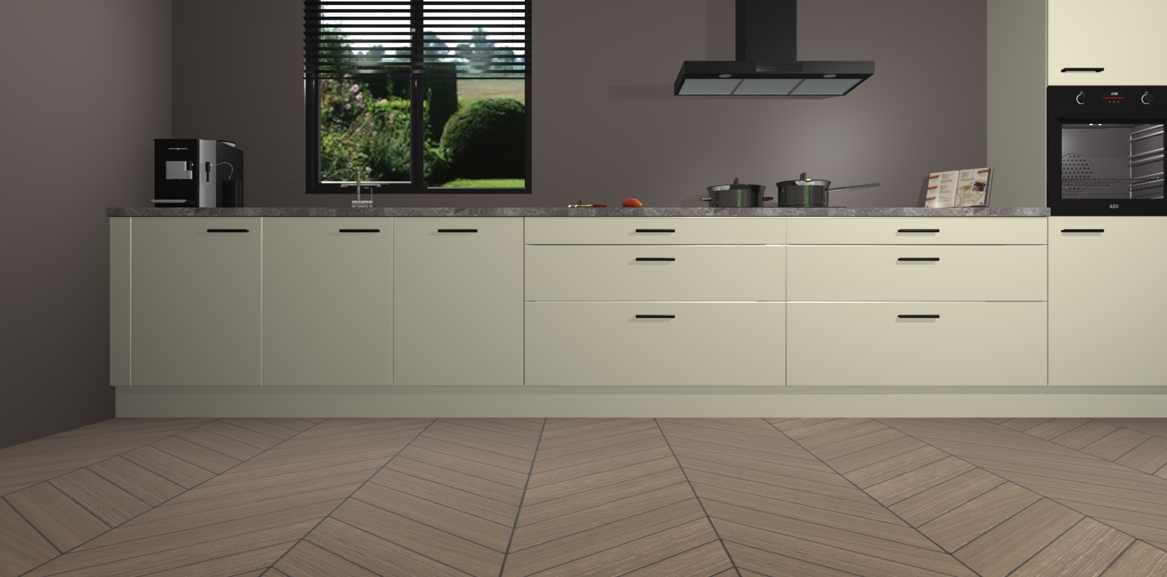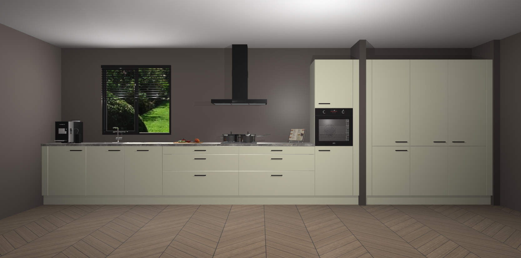 Een stijlvolle en praktische keuken als deze mag gezien worden. Dankzij de prachtige matte afwerking wordt de keuken gemakkelijk het middelpunt van uw huis - hij ziet er geweldig uit onder allerlei lichtomstandigheden, van dag tot nacht!