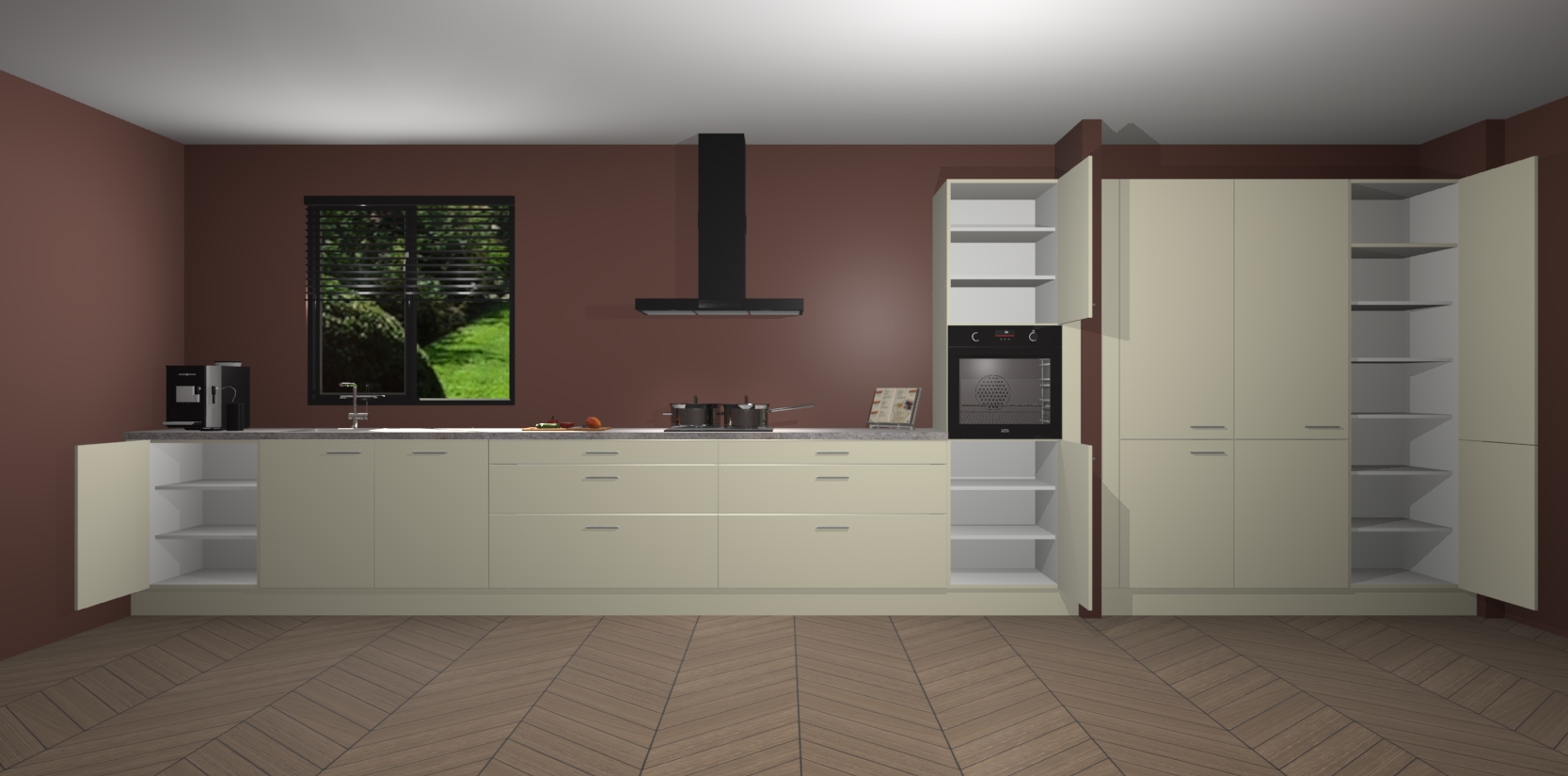 Een stijlvolle en praktische keuken als deze mag gezien worden. Dankzij de prachtige matte afwerking wordt de keuken gemakkelijk het middelpunt van uw huis - hij ziet er geweldig uit onder allerlei lichtomstandigheden, van dag tot nacht!