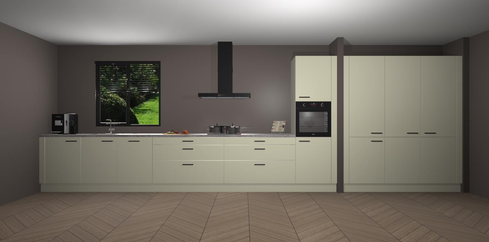 Een stijlvolle en praktische keuken als deze mag gezien worden. Dankzij de prachtige matte afwerking wordt de keuken gemakkelijk het middelpunt van uw huis - hij ziet er geweldig uit onder allerlei lichtomstandigheden, van dag tot nacht!
